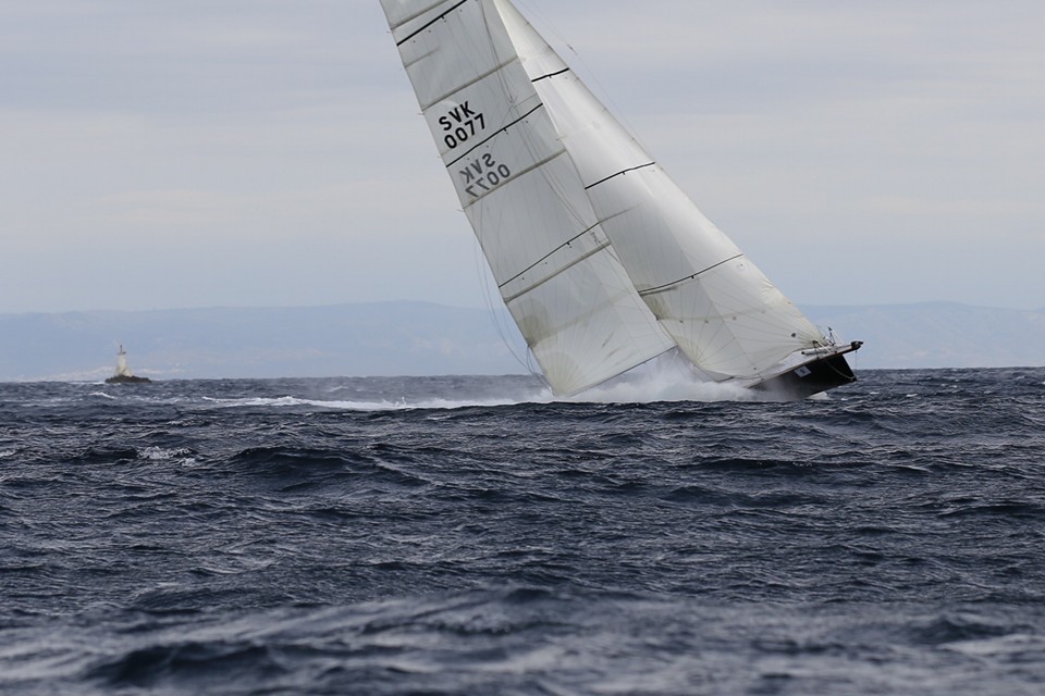 A kako smo mi bili tu u vrhu, nažalost, upali smo u jednu rupu gdje smo plutali bez vjetra oko sat vremena. Ostali su to vidjeli pa su nas zaobilazili i u smjeru Šolte i u smjeru Hvara. A kasnije, kad je zapuhao maestral, nas je prve zahvatio.