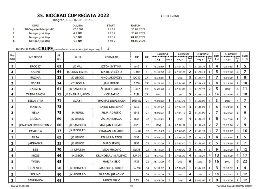 Rezultate regate po skupinama možete pronaći na ovom linku a najbržom jedrilicom na regati proglašen je već spomenuti Erco D'.