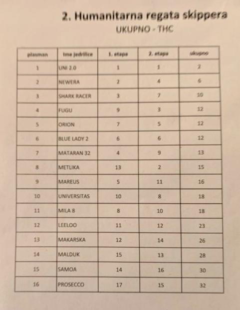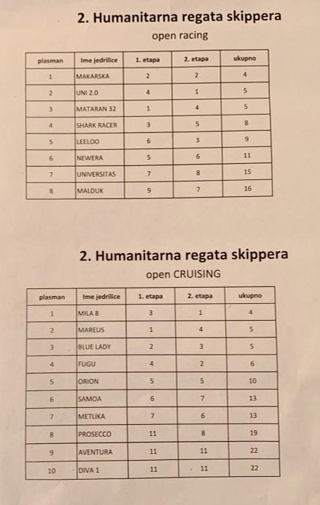 Tu situaciju iskoristila je i Mila 8. Ona je dosta zaostajala za vodećima, ali pratili su situaciju i pojačanje vjetra s te strane na kraju joj je donijelo pobjedu u cruising grupi.