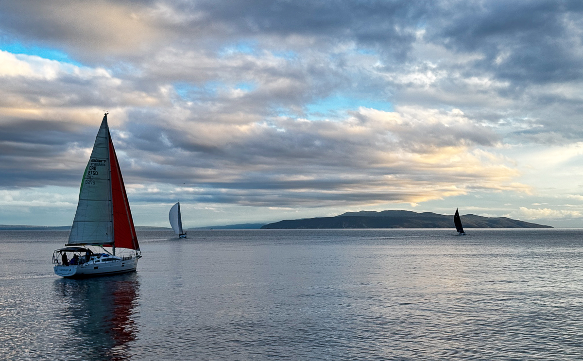 Od Opatije jedriličari su se otisnuli s termikom koja je puhala iz smjera Slatine, a primijenjena je klasična taktika ove mikrolokacije da se što brže odvoji o d kopna i zajedri prema sredini Kvarnerskog zaljeva.
