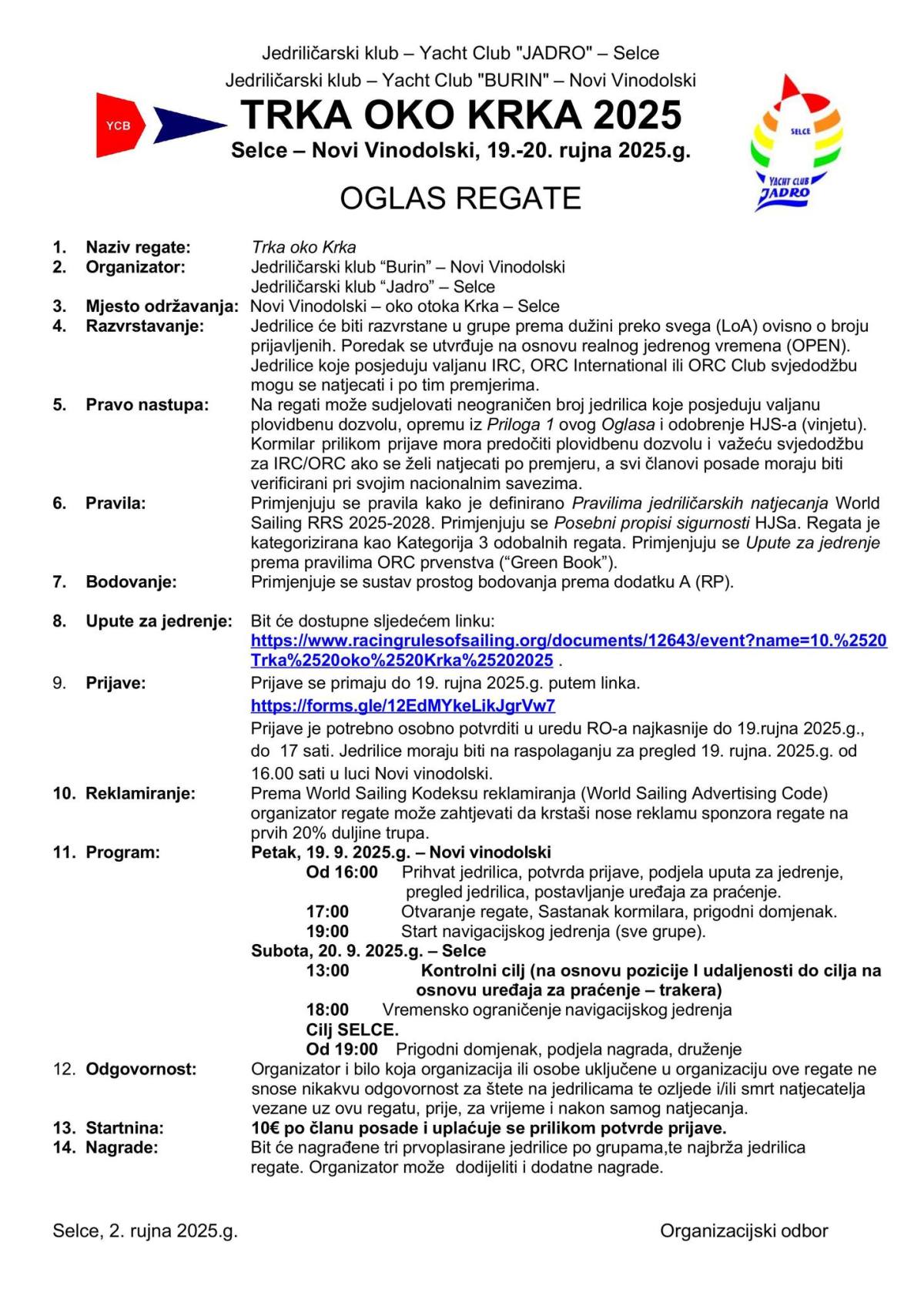 JK Jadro iz Selca i JK Burin iz Novog Vinodolskog ponovno zajednički organiziraju regatu oko otoka Krka, a ove godine je riječ o prvom dvoznamenkastom izdanju.
