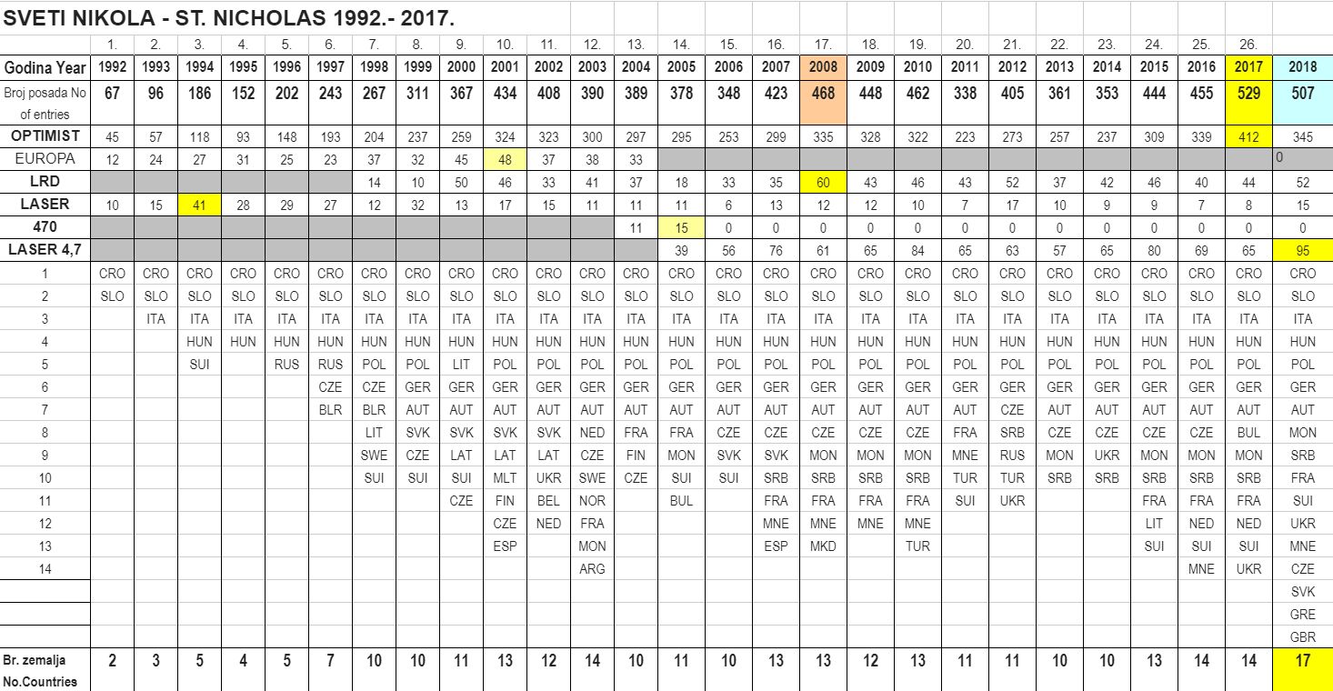 27. izdanje regate Sveti Nikola srušilo je nove rekorde, ovog puta po broju država iz kojih su jedriličari sudjelovali na regati. Najviše je bilo jedriličara iz Italije, uz domaće jedriličare, nastupili su jedriličari susjednih zemalja: Slovenije, Mađarske, Srbije i Crne Gore. Tradicionalno nam stižu jedriličari iz kontinentalnog i sjevernog dijela Europe: Austrije, Njemačke, Češke, Slovačke, Poljske i Ukrajine. Ove godine nakon dosta vremena zajedrili su Grčki jedriličari, a već nekoliko zadnjih godina zahvaljujući našim trenerima koji rade u inozemstvu doputovali su i jedriličari francuskog govornog područja iz Francuse, Švicarske i Monaka. Iznenadio je velik broj jedriličara u klasi laser 4.7 koja je prijelazna klasa nakon klase Optimist. Sveti Nikola, zaštitnik pomoraca, bio je uz nas i ove godine i omogućio nam sigurno i uspješno jedrenje u sva tri dana natjecanja. U petak i nedjelju sve klase su odjedrile cijeli program odnosno po 3 jedrenja, dok je u subotu je uz kišu održano samo jedno jedrenje u klasi Optimist, dok laseri nisu uspjeli startati. Zbilja nezaboravan spektakl, dobili smo pohvale od mnogih jedriličara, trenera i roditelja i to nam je motivacija da 28. Izdanje Svetog Nikole bude još bolje. Za kraj htio bih se zahvaliti svim volonterima, roditeljima, članovima regatnog odbora, članovima međunarodnog žirija i sponzorima koji su omogućili da se regata održi, a naravno i svim jedriličarima, trenerima i roditeljima, bez kojih ova regata ne bi bila ono što je, jedna od najvećih regata za ovaj uzrast jedriličara u Europi.