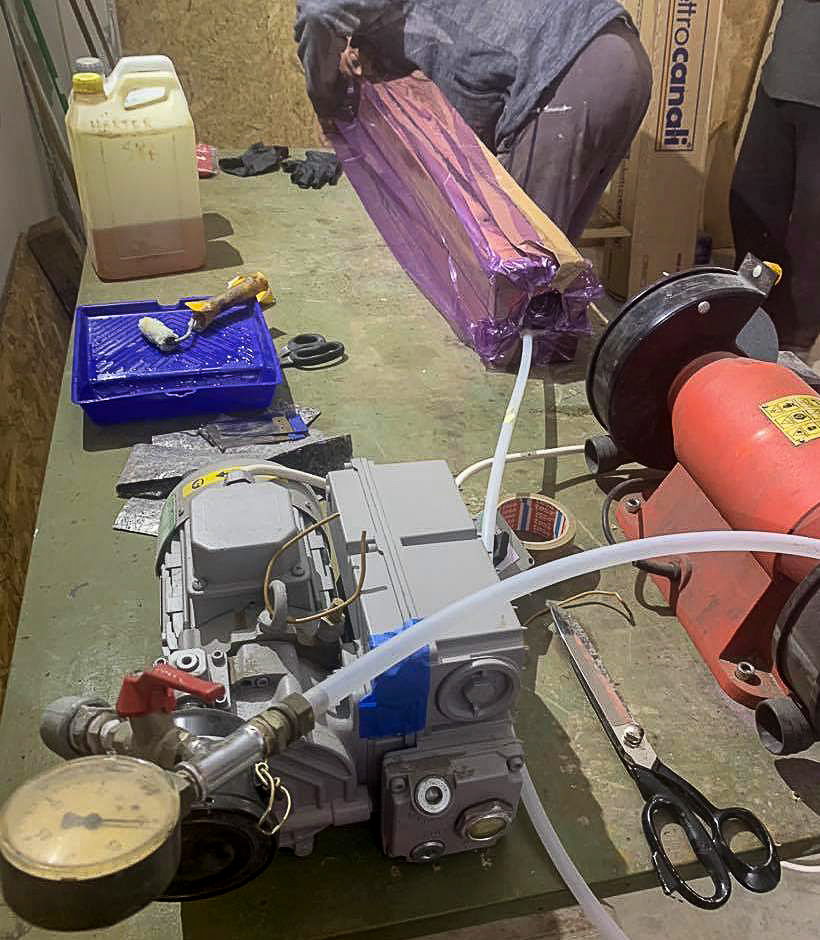 Sve to smo radili u vakuumu i posebno zahtijevan dio posla je bio da se najlon za vakuum postavi s unutrašnje strane cijevi!