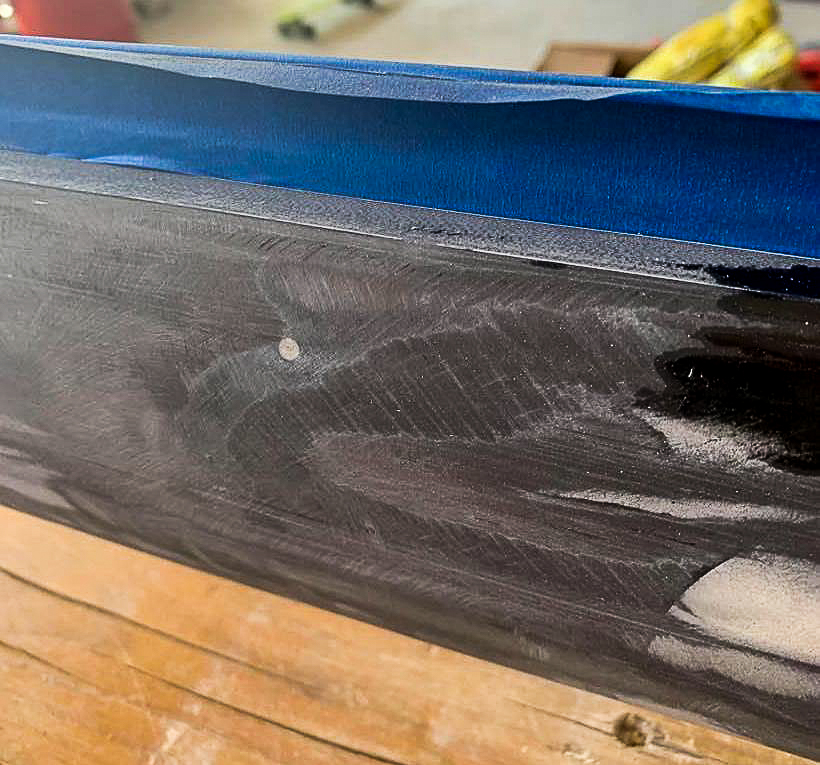 Kad se taj kit osušio krenuli smo s brušenjem. Prvo sam izbrusio te rupice jer je nešto kita na njima i izašlo, a onda sam nastavio s brušenjem do "zdravog karbona". Naime, bilo je tu dosta karbonskih niti koje su se odvojile od jarbola kad se slomio i koje više nisu imale svrhu, pa je i njih trebalo maknuti.
