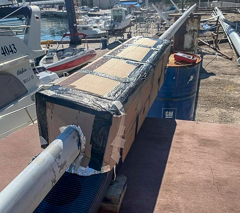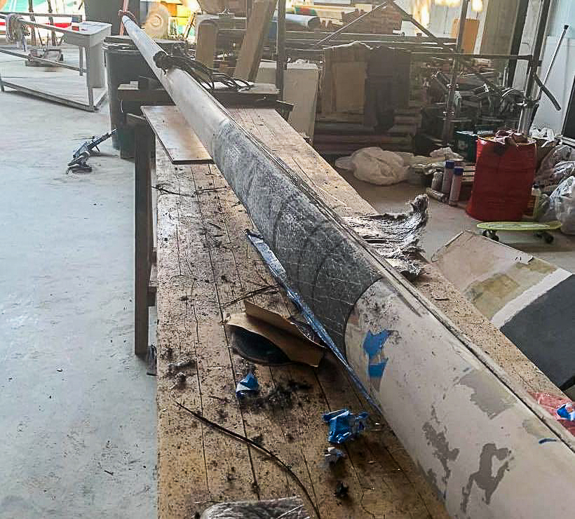 Prva ideja je bila da napravimo više umetaka dužine desetak centimetara koji bi ulazili u jarbol i da tako malo po malo popravljamo jarbol iznutra. Bila je aktualna prvih nekoliko dana, ali smo odustali od nje jer unutrašnjost jarbola nije ravna, pa su ti umeci stalno zapinjali.