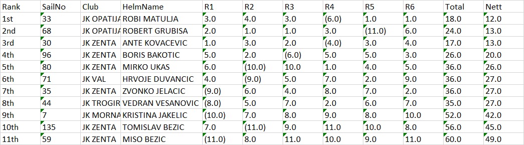 U svakom slučaju riječ je o uvjetima koji su dozvolili prelazak cijelog zadanog kursa u razumnom vremenu, a što je najvažnije, nije bilo pretjeranog odvajanja vrha u odnosu na ostatak flote. Dapače, jedrenja su bila vrlo ujednačena u smislu osvojenih pozicija s obzirom da su se skoro svi izmjenjivali na svim pozicijama. Naravno, vodila se i statistika ulazaka u cilj zbog kasnije analize, a koji brojevi su konkretno u pitanju možete vidjeti ovdje.