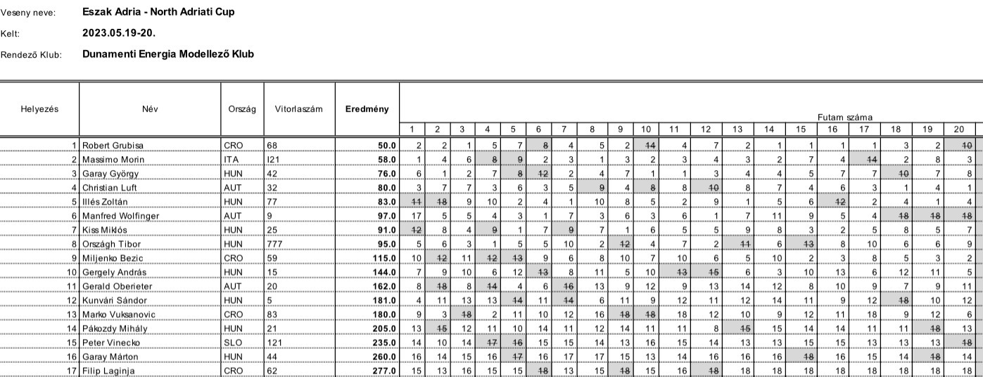 Domaćini u Nagykaniszi bili su članovi Dunamenti Energia Modellezo Kluba, a na regati se okupilo 17 modelara od čega je četvero bilo Hrvata.