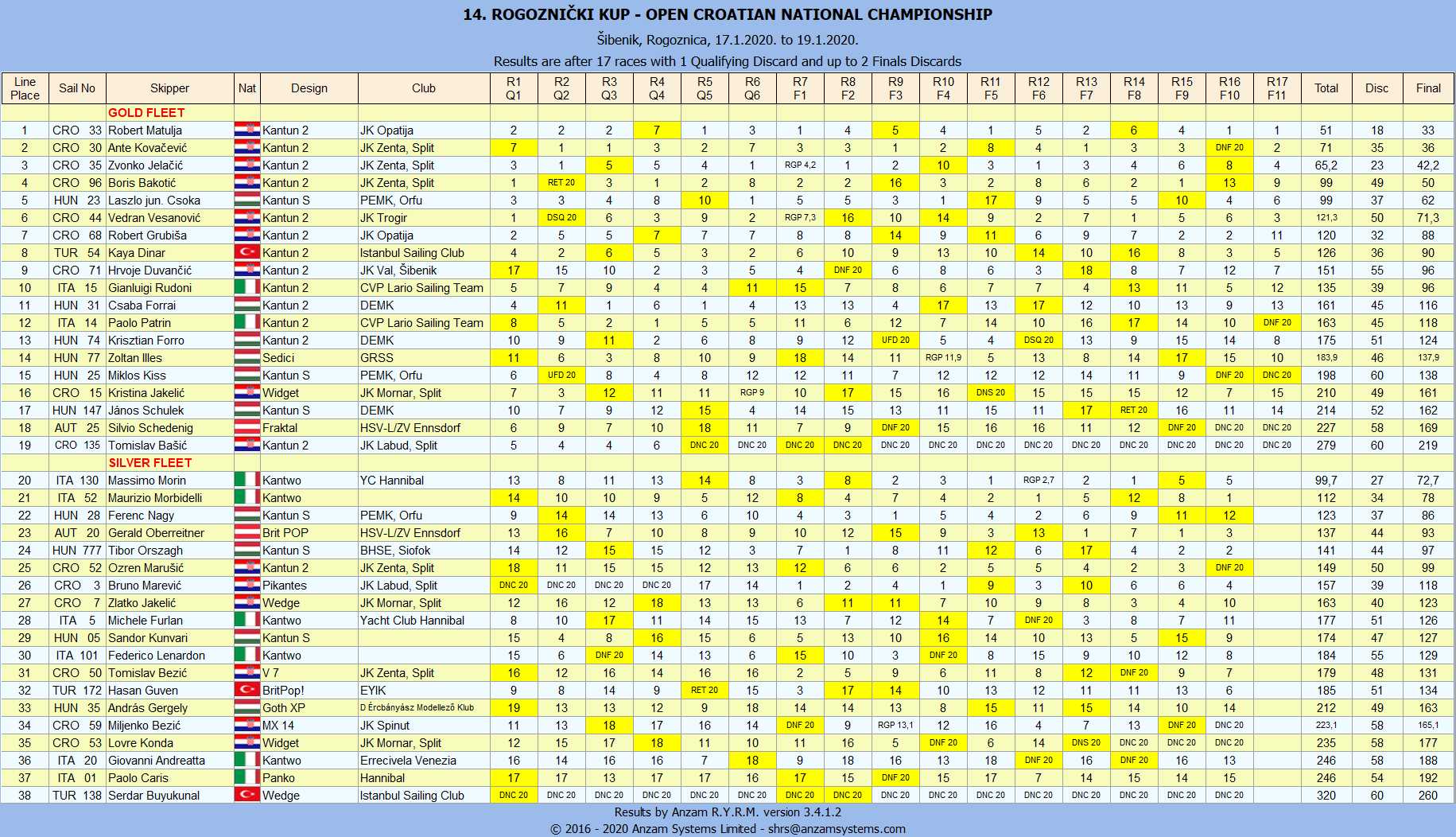 Ukupni rezultati regate mogu se pronaći ovdje.