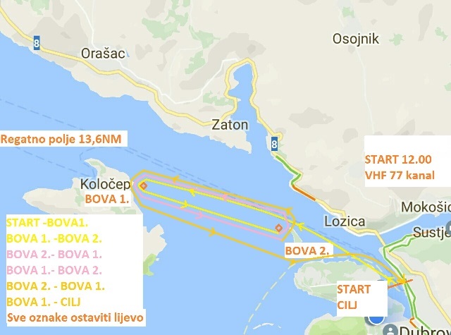 Svaku bovu je trebalo obići po dva puta, ostaviti ih lijevim bokom, a ukupna duljina polja bila je 10.8NM (ne 13.6 koje su označene na karti).