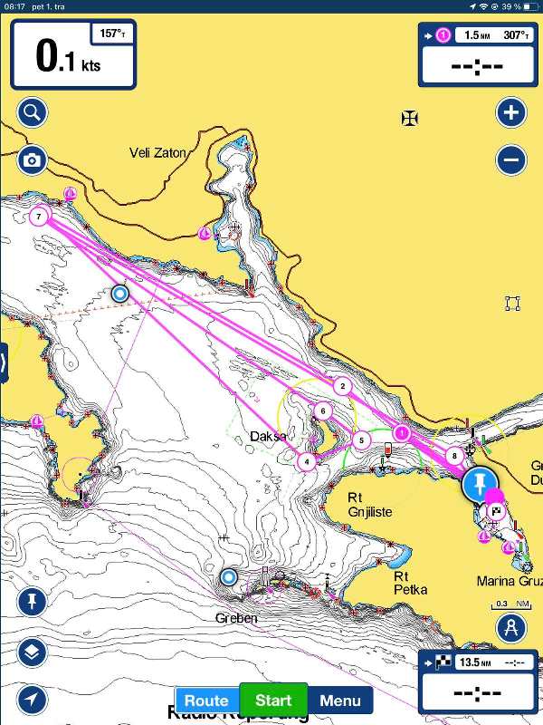 Rutu je ovog puta zadala posada jedrilice Lero, a definirali su je tako da je imala duljinu od oko 13NM. Linija starta postavljena je na uobičajenoj lokaciji između "male đige i zapadnog kuta Konzuma". Nakon toga jedrilo se prema Orašcu gdje je trebalo obići žutu bovu s desne strane (ostaviti je lijevo), zatim Daksu također ostaviti lijevim bokom, pa ponoviti obilazak oko žute bove u Orašcu i natrag gdje je bio i start: