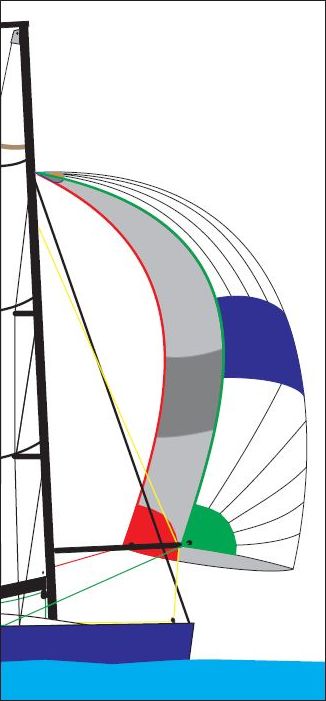 • kod jedrenja s vjetrom u bok, kada predstavlja “moćno” prednje jedro i kada vjetar struji od prednjeg prema zadnjem rubu. Tada se spinaker ponaša kao aerodinamička površina.