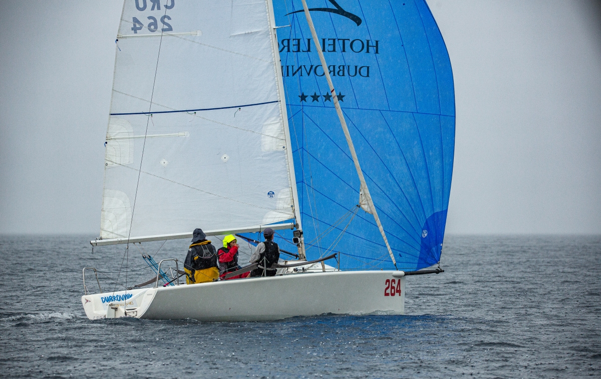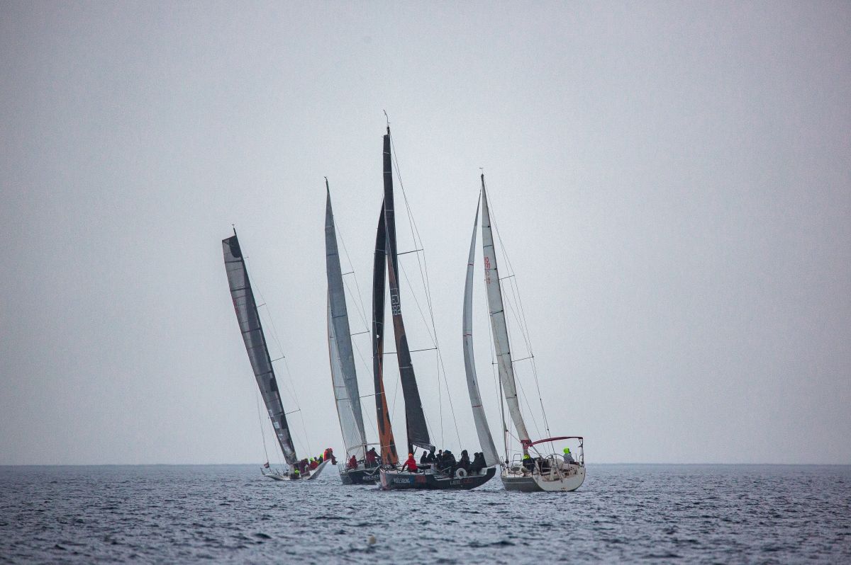 Kako je flota odmicala od starta kiša je pojačavala, dok je vjetar uglavnom bio jednake snage. Makarska se polagano odvajala i povećavala razliku, a neke jedrilice su jače refule pokušavale pronaći bliže kopnu. U nekim trenucima to je izgledalo izgledno rješenje, ali pomoćni cilj koji je bio postavljen blizu Pučišća bio je u samoj blizini obale Brača, pa su se morale ponovno raditi tranzicije na prvotnu rutu.
