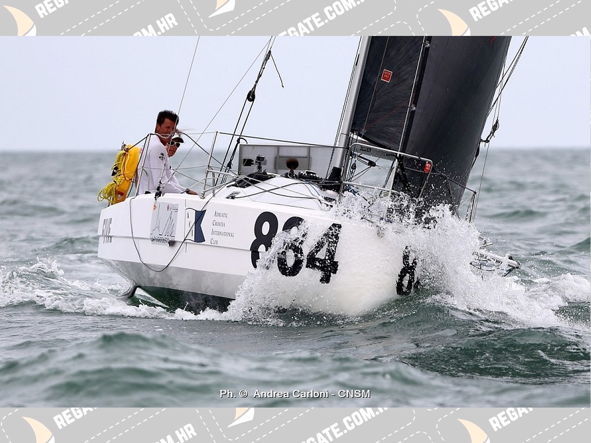 Nakon što smo obišli bovu postavljenu ispred Grado-a krenuli smo na jug i ta etapa prema obali Istre se jedrila u orcu. Od tih trenutaka počinjemo se oslanjati na routing koji je predviđao da će vani biti jači vjetar, pa smo krenuli u tom smjeru. To je bila prva greška jer se to nije ostvarilo. Ostali su za to vrijeme dobili burin, a mi smo ostali previše vani i oni su nam se tu već odvojili. Tako da su oni praktički na jednim uzdama odradili cijelu dionicu, a mi smo se mučili s klasičnim orcavanjem. Istina, kad smo shvatili da je uz obalu burin i mi smo se približili, ali oni su do tada napravili već popriličnu razliku.