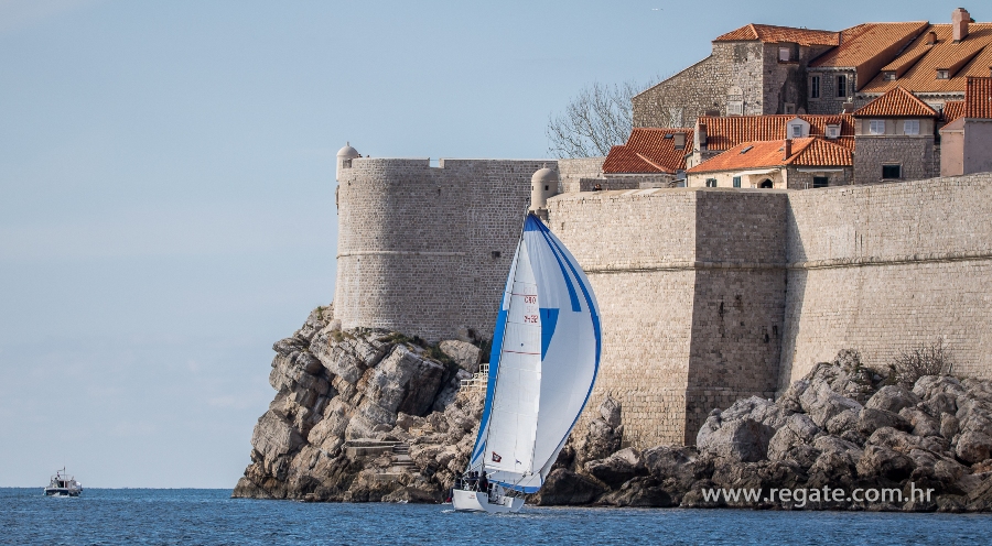 Na startu je puhao lagani do umjereni burin po kojem je flota jedrila lijepim brzinama do Grebena, od kojih je glavni poriv davao južin u nastajanju... točno po prognozi. S tim novim vjetrom sudionici regate su lagano jedrili ispod drevnih zidina i sa svojim jedrima stvarali fenomenalnu sliku, jedinstvenu na Jadranu.