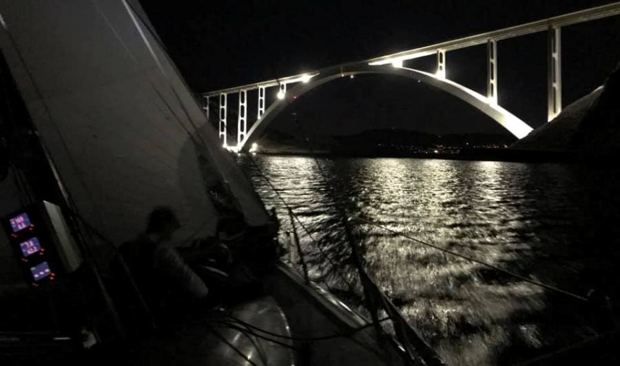 Malo iza ponoći, pet sati nakon starta, Molo Longo je stigao do otočića Prvića, desne vratnice Senjskih vrata.