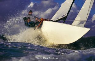 Nekako u to vrijeme, kormilar Dump Trucka, Bruce Savage, zajedno sa Shaun Carkeek-om (danas uspješnim jedriličarskim dizajnerom) zamolili su me da im napravim fotografije na njihovoj jedrilici klase Soling koje bi im trebale pomoći u prikupljanju sredstava za njihovu olimpijsku kampanju. Imali smo sreću što kad smo birali dan i vrijeme za fotografiranje da su se poklopili izvrni uvjeti i tada sam snimio ovu fotografiju na kojoj se probijaju kroz val na Brambles Bank-u.