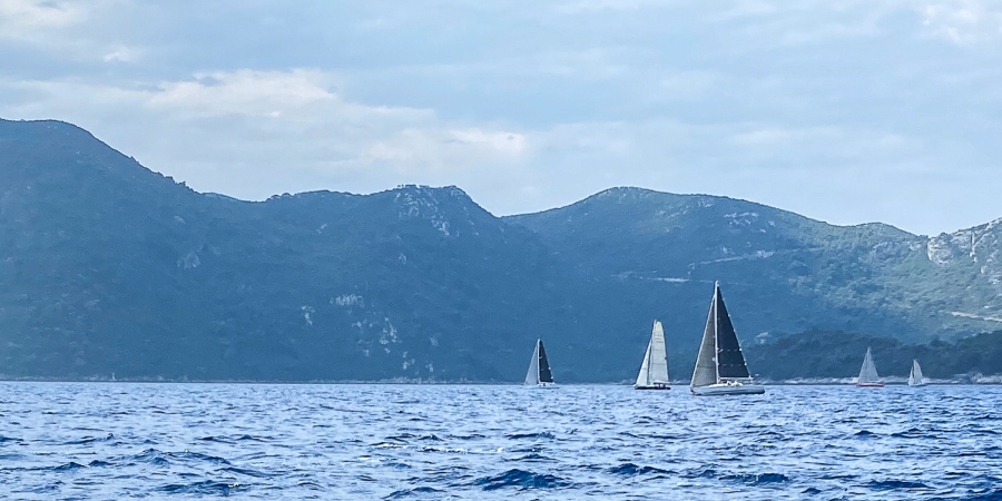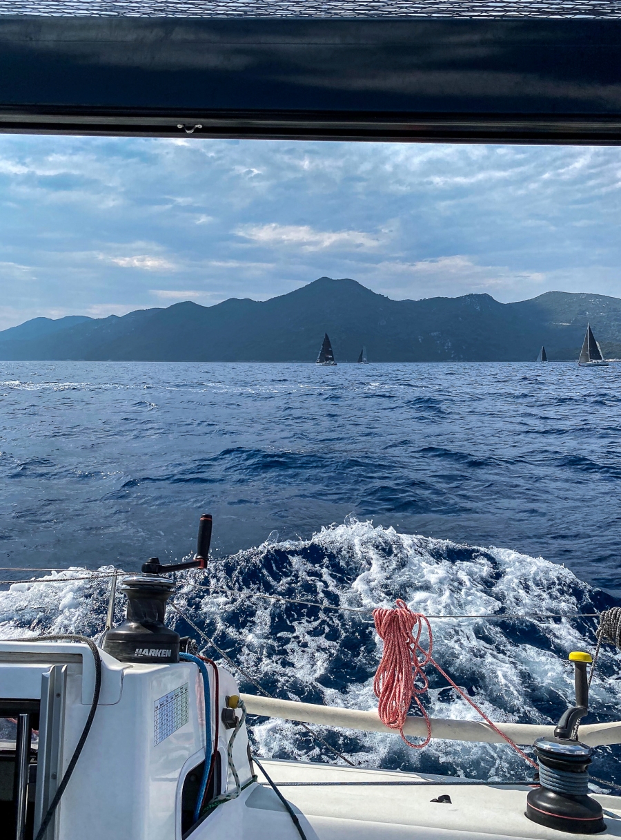 U takvom tempu naprijed nazad negdje u visini između Šipana i Lopuda počeli smo se odvajati od konkurencije koja je sve teže i teže podnosila driceve snage i do 15 čvorova, te padove na 0. Pogled straga pokazuje da ni manji brzi brodovi nisu uspjeli riješiti tu problematiku.