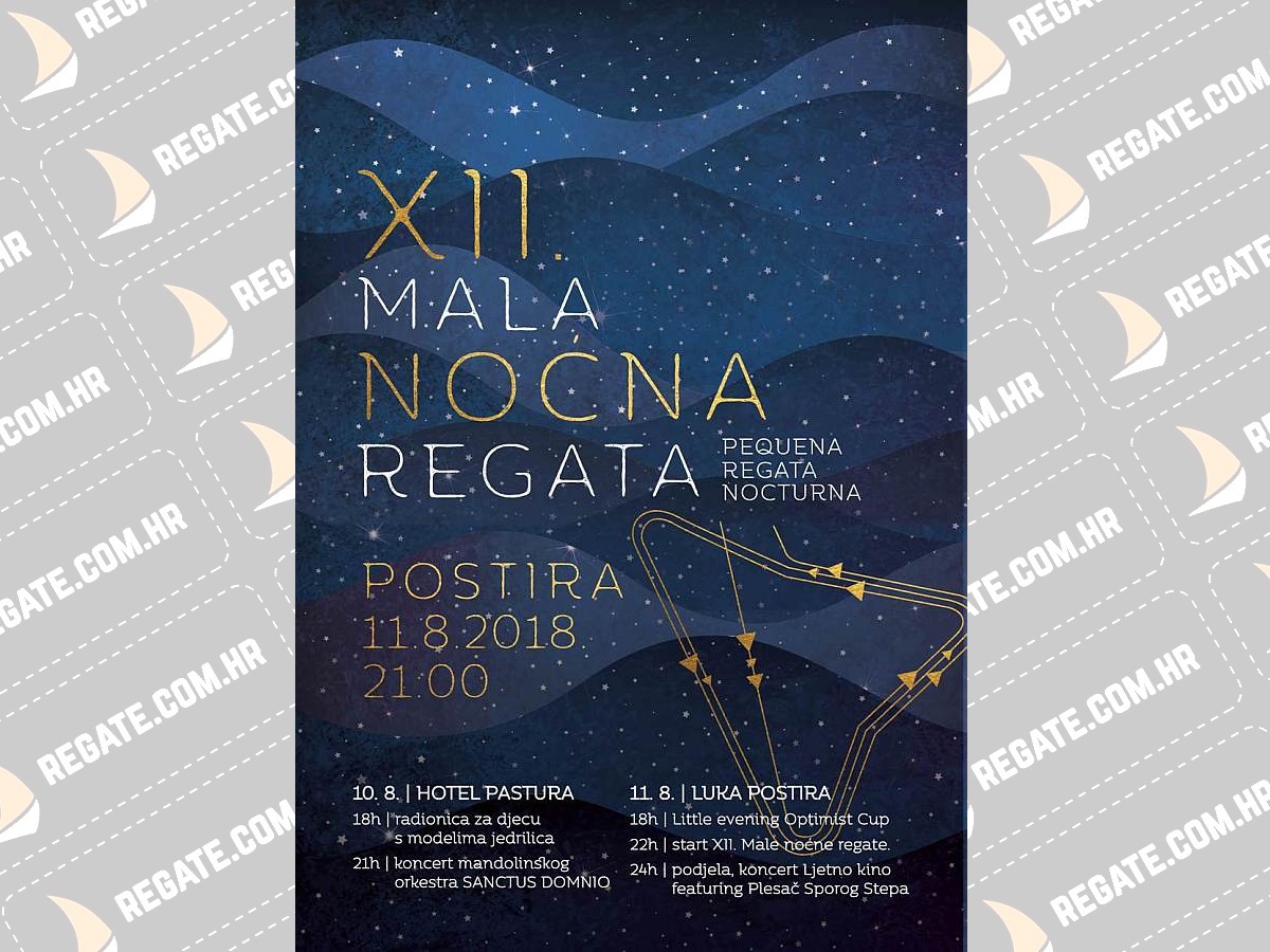 Mala noćna regata u Postirama na otoku Braču lani je proglašena najboljim događajem na Jadranu vezanim za tradiciju. Jedri se u Postirskom portu zahvaljujući fenomenu koji se javlja noću kad je stabilno vrijeme. S Vidove gore se termika spušta kroz Dolac i dolazi u Postirski porat, nema vala i ima vjetra za jedrenje. Porat nije velik i kad se postave tri bove dobije se regatno polje za krstaše koji ne smiju biti dulji od deset metara. S obzirom da porat nije velik jedrilice prolaze uz mul, vidi se kako posade rade, podižu se spinakeri i genakeri na malim relacijama od 50-60 metara... jedna jedinstvena jedriličarska pozornica. Regata se može neposredno pratiti neovisno da li se sjedi na rubu mula ili zavaljen negdje ispred kafića. Jedna mega predstava čak i za one koje ne zanima jedrenje. A to sve počinje u deset sati navečer praćeno s Mozzartovom Malom noćnom muzikom. Tijekom jedrenja slijedi neka druga muzika koja je izabrana za tu godinu. Na početku smo forsirali klasiku, dok nam zadnjih nekoliko godina svira splitski gradski mandolinski orkestar Sanctus Domnio koji svira orginalne kompozicije g.Pavla Sviličića. Tako da to na momente izgleda dosta filmski. Iza regate uvijek slijedi zabava za koju je zaduženo Ljetno kino, kućni band regate. Sve u svemu jedan spektakl, pa tko može doći u Postire u subotu 11. kolovoza neće požaliti i baš će nam biti drago! A evo i jedna zanimljiva crtica iz povijesti regate... prva Pequena regata nocturna nije bila izdašna po pitanju vjetra, pa je dinamiku dešavanjima na moru donio prvi stručni komentator regate g.Marijan Ban. Tada je g.Ban preko razglasa objašnjavao publici osnove jedrenja i dešavanja na regatnom polju. U principu nije ništa smiješno govorio ali je na kraju ispalo kao stand up komedija i bilo je fenomenalno prihvačeno od strane publike. Od tada to ulazi u obavezni program, a ove godine mikrofon bi se ponovno trebao dobiti g.Ban.