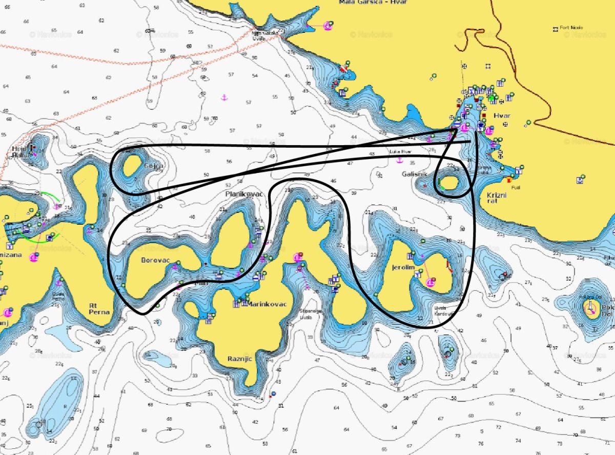 Start je bio iz Hvarske luke. Jedrilo se oko otočića Galešnik, pa natrag na bovu u gradu (drugom stranom startne linije) nakon koje je slijedila orca prema prolazu Velo ždrilo i dalje kroz sve prolaze Paklinskih otoka. Zatim je na redu bila orca do otočića Gojca pored Palmižane i natrag u cilj u gradskoj luci.