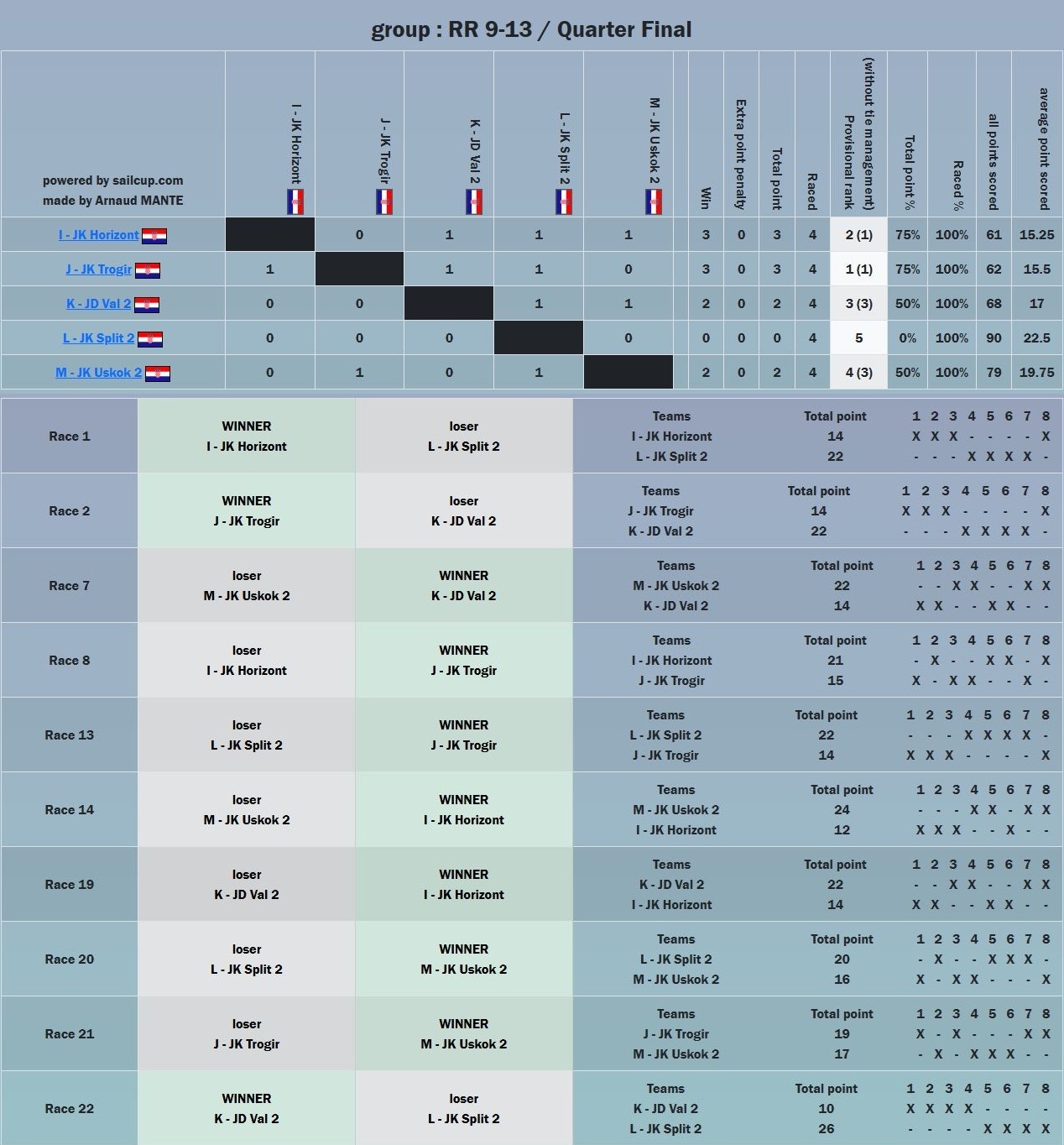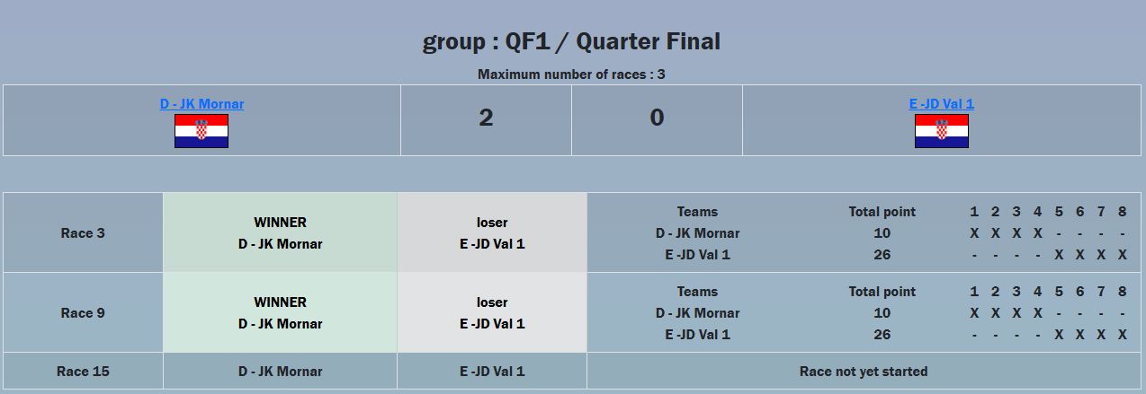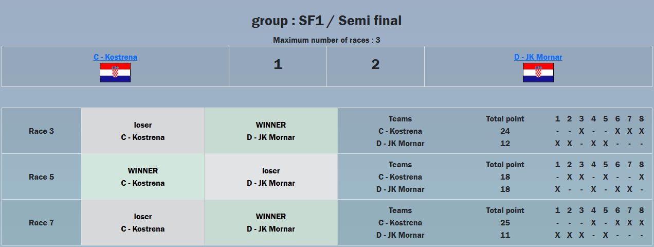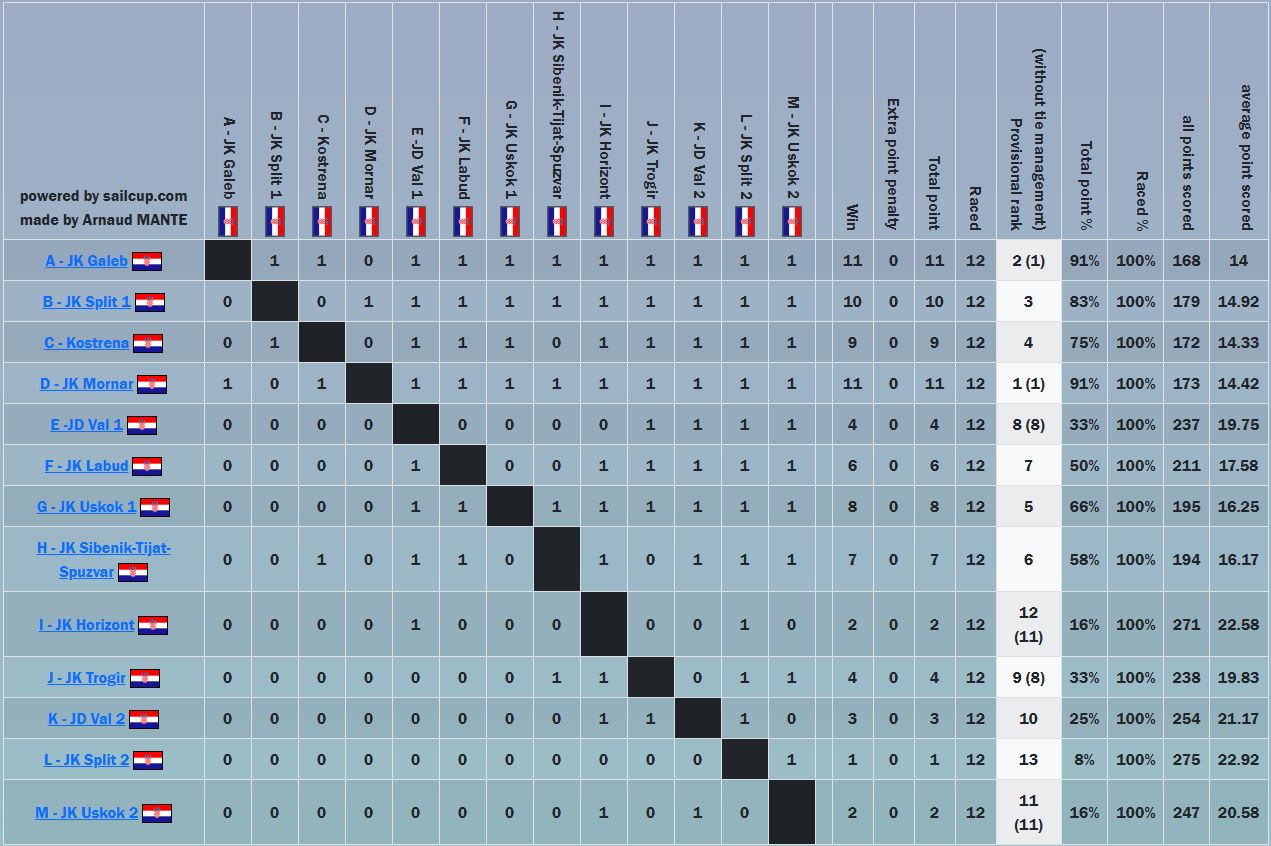 Po tim uvjetima uspjeli smo napraviti cijeli Round Robin, ukupno 78 matcheva koje su ekipe jedrile jedne protiv drugih.