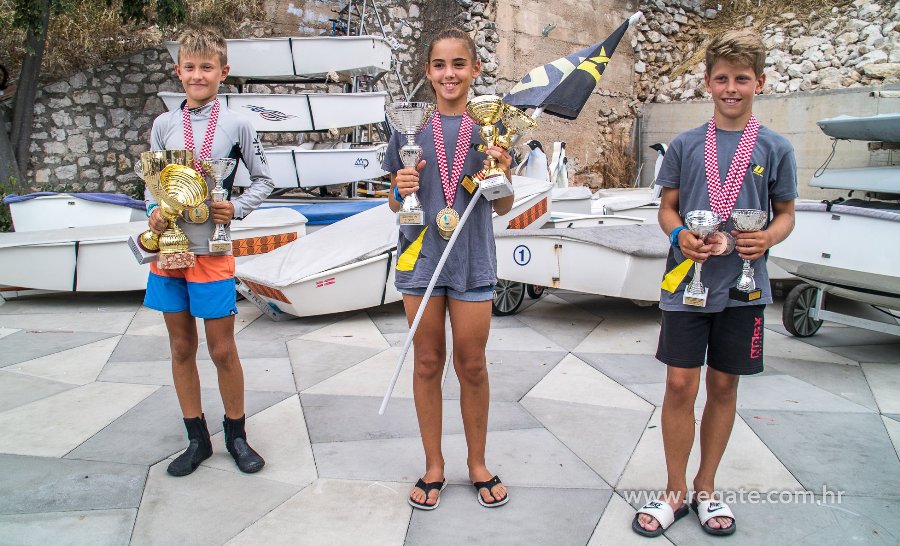 Po pitanju bodova na prvom i drugom mjestu s jednakim brojem bodova, kraj dana su dočekali Ema Grabar i Bepo Duplančić. Bepo je bio konstantan i u oba plova je osvojio drugo mjesto, ali Emina pobjeda u prvom plovu osigurala joj je vodeću poziciju unatoč trećem mjestu u drugom plovu. U tom jedrenju najbrži je bio Emin klupski kolega Marko Puljiz, ali bolje od trećeg mjesta nije mogao, jer mu je 7. mjesto u prvom plovu donijelo dosta kaznenih bodova u odnosu na spomenuti dvojac.