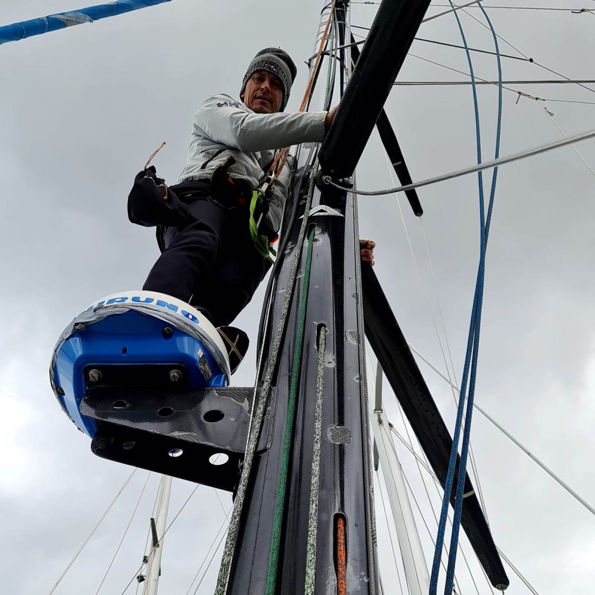 Penjanje solo na jarbol u noći na valovitom oceanu: teško da ima nešto strašnije. No, tu je primjenjiva stara, prokušana formula sa Streifa: to beat the beast, you have to be the beast. Samo koncentracija i čvrstina volje. Dolazim do vrha. Razbacuje me na sve strane, ali grčevito se držim kako god mogu i znam. Skidam slomljenu vjetrulju, ali ne uspijevam skinuti VHF antenu; nju ostavljam gore. Spuštanje je jednako teško kao i uspon. Ali stižem sretno na palubu uz osjećaj velikog olakšanja.