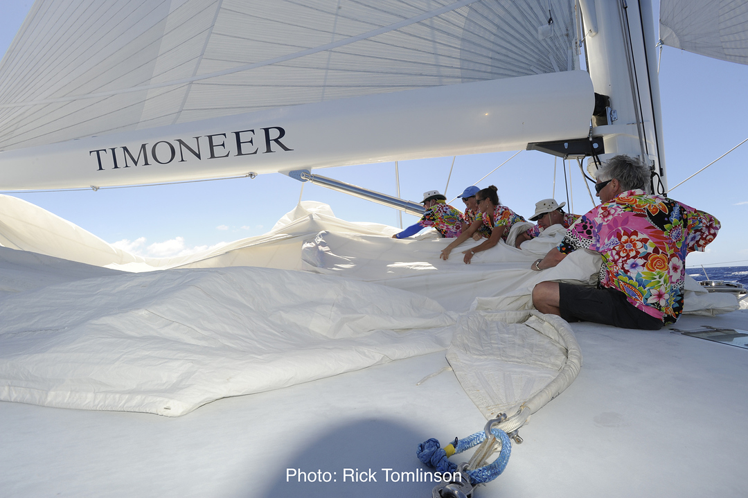 Regatna posada na Timoneeru je uvijek bila vrlo bliska, lojalna ekipa. Uglavnom sastavljena Phil Wadeovih prijatelja i prijatelja od prijatelja, a okupljanje pred regatu je uvijek bio izniman dan. Susret s dugogodišnjim prijateljima s različitih strana svijeta, zajedničko pivo i priča. Prepričavanje starih doživljaja po tko zna koji put i neizmjeran smijeh kao da su ti doživljaji sve bolji i bolji.