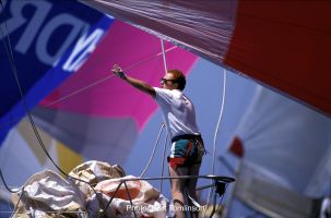 Kratko nakon svitanja uspjeli smo dobiti sve tri jedrilice na istom mjestu, a pedesetica je ačk i jedrila cijelu noć da stigne na snimanje. Na raspolaganju sam imao flamnskog pilota s vrlo slabim poznavanjem engleskog i zadatak snimanja tri jedrilice s ogromnom razlikom u brzinama. Cijelom scenom je koordinirao Lou Lou s perfektnim francuskim preko VHF-a iz bučnog helihoptera. I uspio je poravnati sve tri jedrilice na nekoliko sekundi kako bi uspio dobiti priliku za fotografiranje.